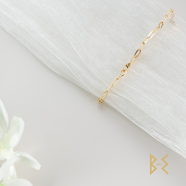 シンプルで存在感のある人気チェーンです。軽やかな透け感とK18のカッテイングが腕の動きに美しさを与えます。一般的な18cmブレスレットです。ネックレスとお揃いはいかがでしょうか?1~2コマ外して少し短くして納品も出来ます。中空ですが当店販売品は修理も可能ですので安心してお求めください。
